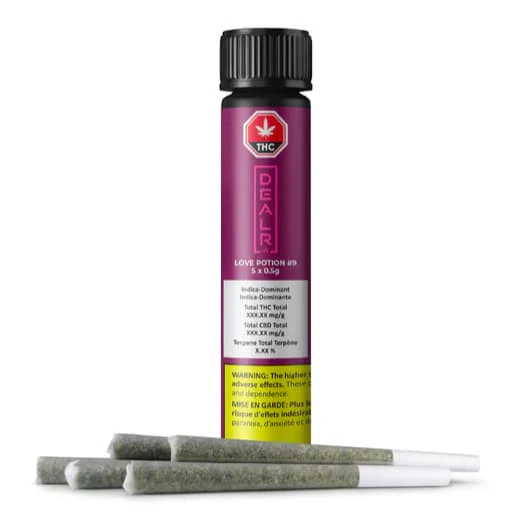 Love Potion #9 is a DEALR indica-dominant pre-roll that comes from Northern Lights #5 and Love Potion #5, two classic cultivars known for their expressive profiles. The flavour unfolds with soft floral sweetness and light herbal tones, followed by earthy pine and a gentle spice on the finish. It also leans warm and nostalgic, layering fresh flowers, and a subtle incense-like note. Love Potion #9 offers a smooth, refined profile with a quiet nod to closeness.