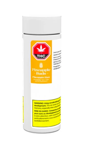 Pineapple Haze brings classic Super Silver Haze traits of a potent sativa, but with an added touch only Pineapple Buds can provide. By crossing this outstanding genetic with Pineapple Tart, the flavour profile gets an added mouth-watering, creamy, pineapple-coconut taste. The flowers are bright green with red hues and have a thick, frosty coating of trichomes. This pre-roll is made in-house by hand and machine, using only fresh, small-batch flower. Terpenes include limonene, humulene, and caryophyllene.
